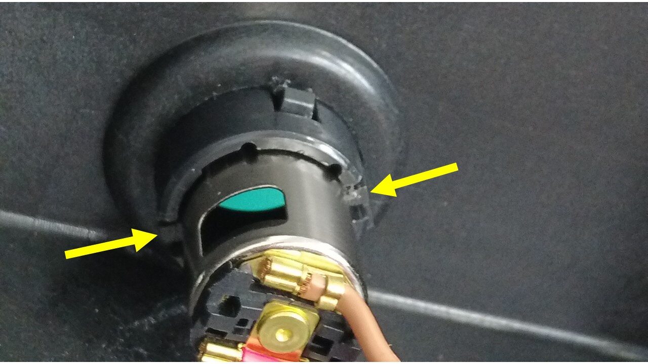 Note2x locking tabs, Release plastic tabs and push LV power outlet cap out, Flip the center console as needed