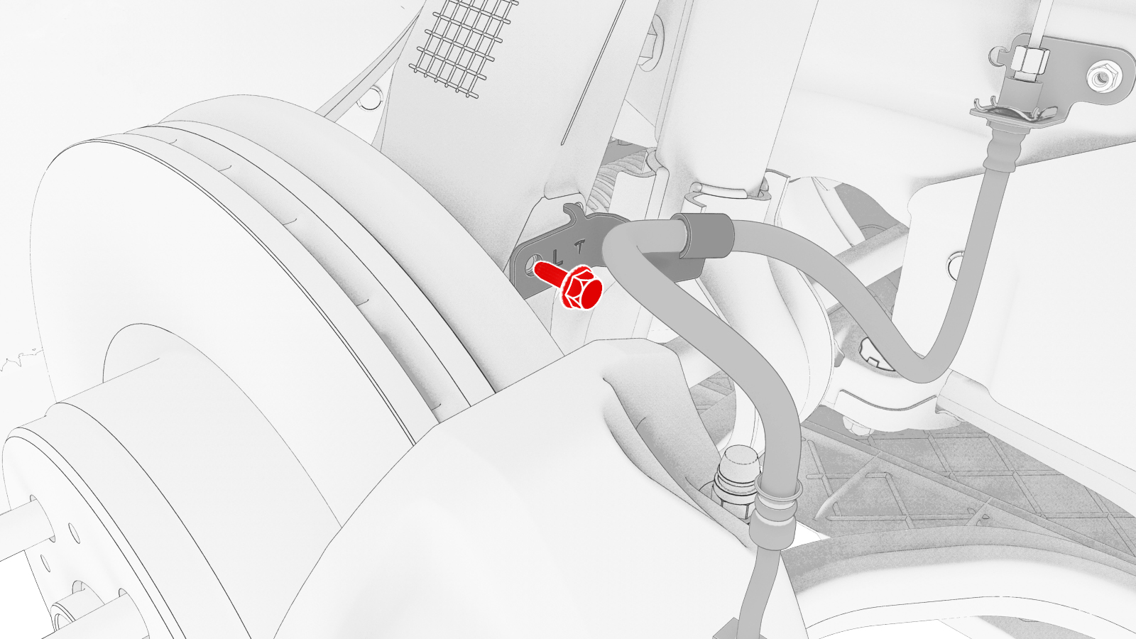 Install the nut that securing LH front brake line to LH front brake hose.