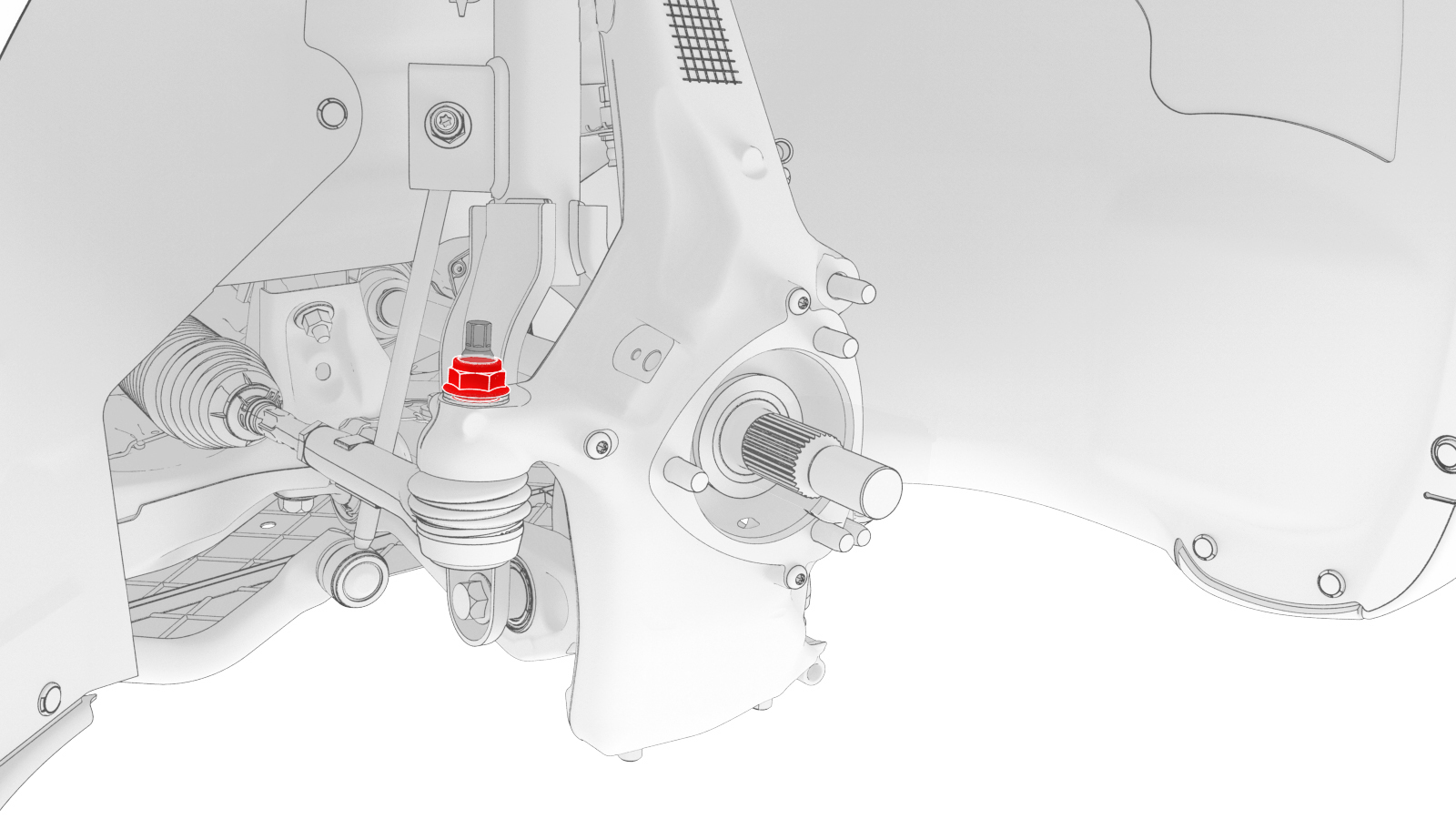 that attaches the LH front tie rod end to the LH front suspension knuckle,