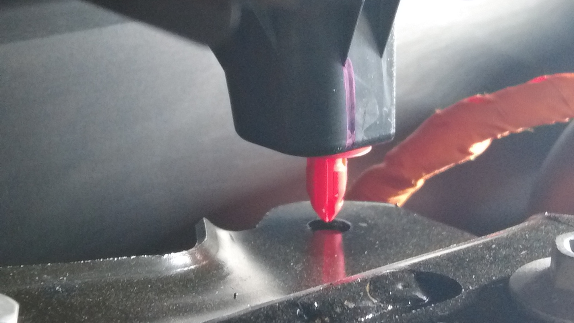 locator pins (x3) that attach the underhood storage unit to the vehicle, and