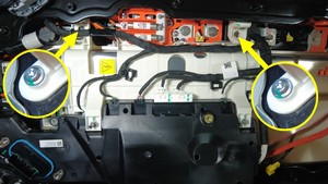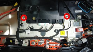 | Bolts (x2) that attach the HV controller hinge tray to the ancillary bay cover |