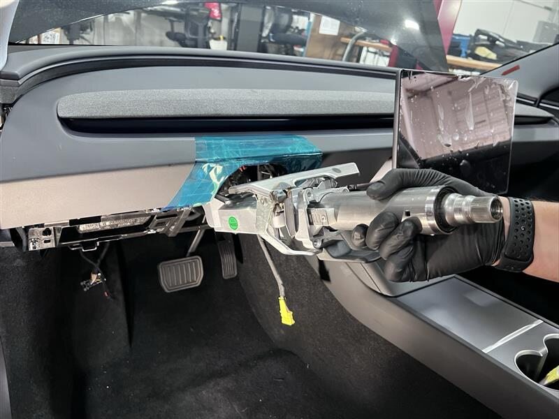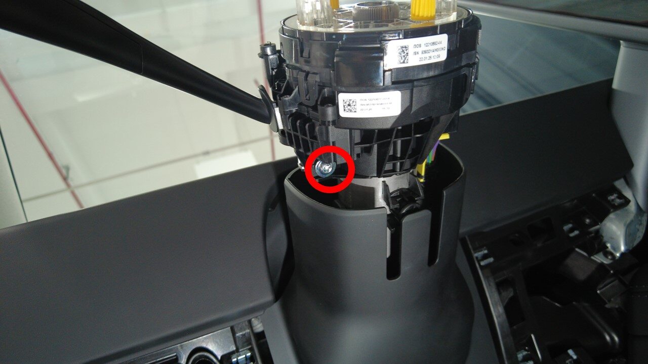 - Remove the steering column control module. See Steering Column Control Module (Model 3 Standard) (Remove and Replace).