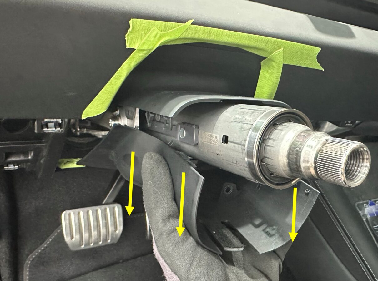 TIpPull the instrument panel slightly outward to give extra access for manual steering column removal.