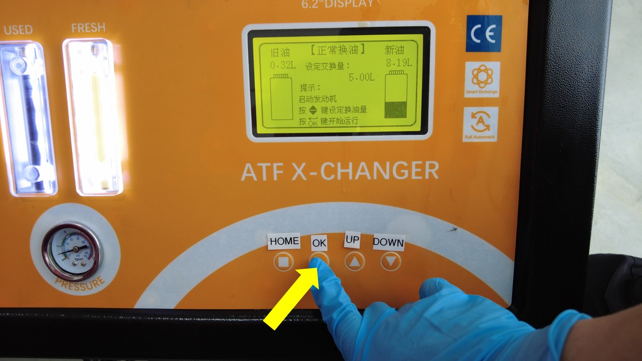 and then press the OK button to start the oil exchange process.