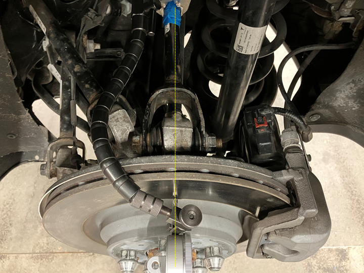 NotePay attention to the clamp location and the routing of the flex bar. Firmly connect the indicator rod to the lowest friction part of brake rotor. Align the measurement rod with the upper aft link and make sure that the indicator rod is properly depressed, allowing travel in both directions without bottoming out. Set the measurement to zero. Make sure the flex bar is free of the brake rotor and shield.