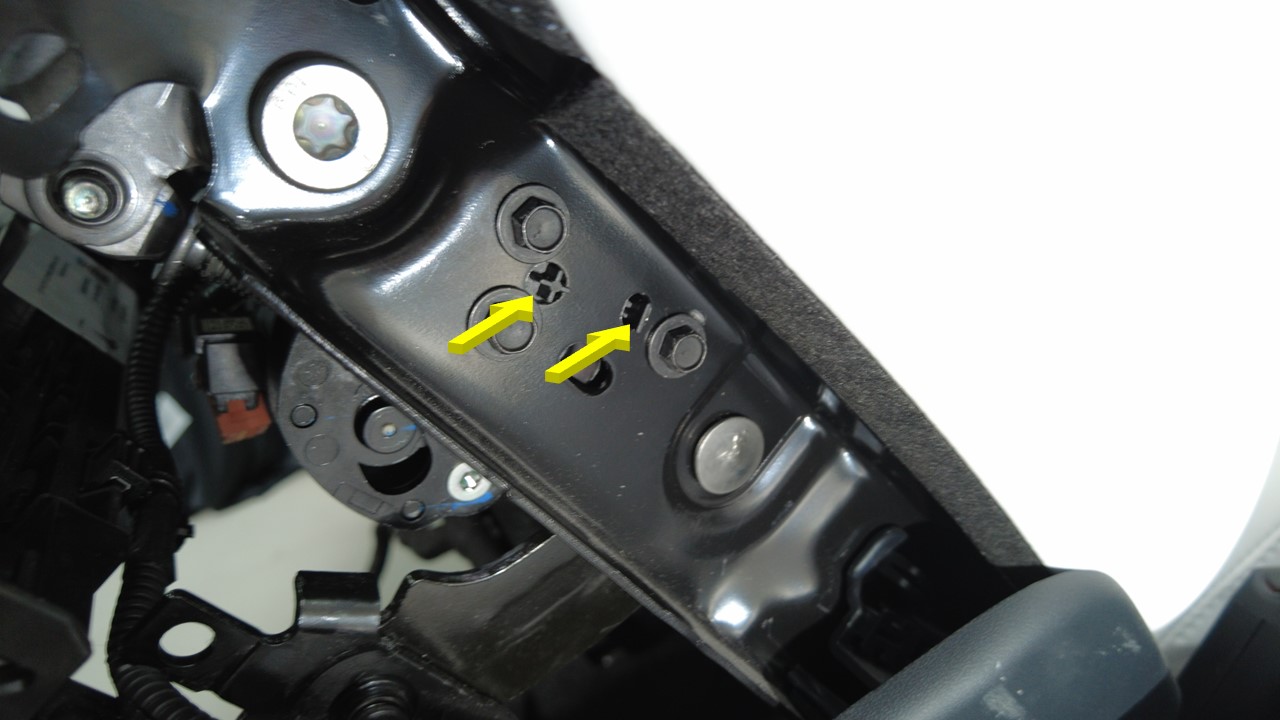 | Bolt that attaches the RH front seat tilt motor adjustment arm to the seat assembly |