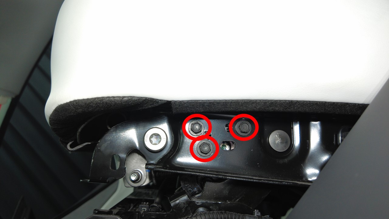 | Bolts (x3) that attach the RH front seat tilt motor to the seat frame |