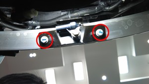 | Bolts (x2) that attach the center impact accelerometer sensor bracket to the front bumper beam. |