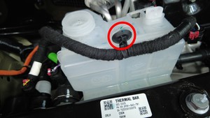attaches the electrical harness to the top of the coolant bottle.