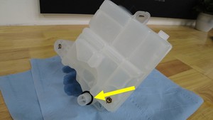 Remove the screw that attaches the side of the coolant bottle to the