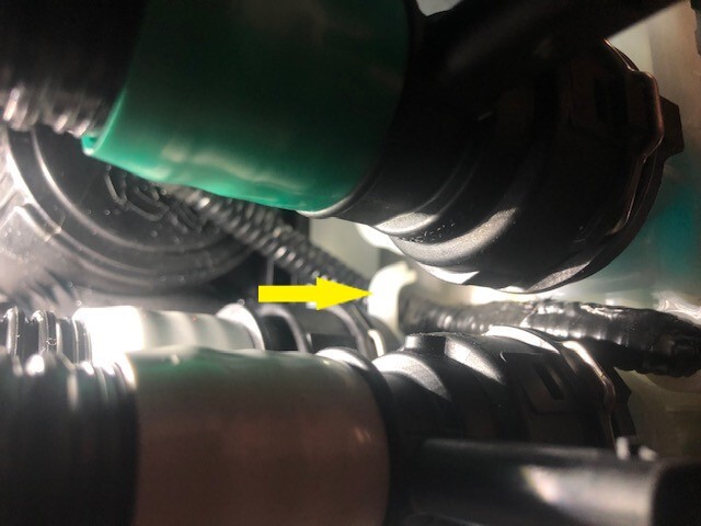 the bolts (x2) that attach the supermanifold to the shock tower brace.