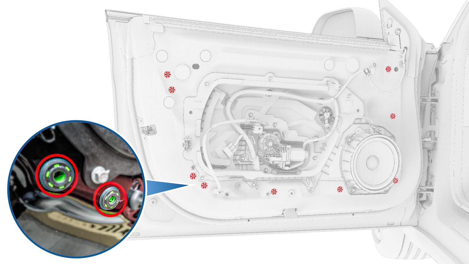 | Screws (x3) that attach the LH front door panel to the LH front door |