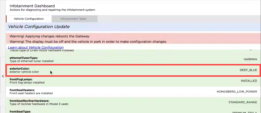 after reboot, the window indicates a successful update to the vehicle