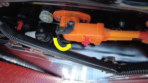 - Fully raise the handle on the electrical connector that connects the front drive unit HV harness to the HV battery.
