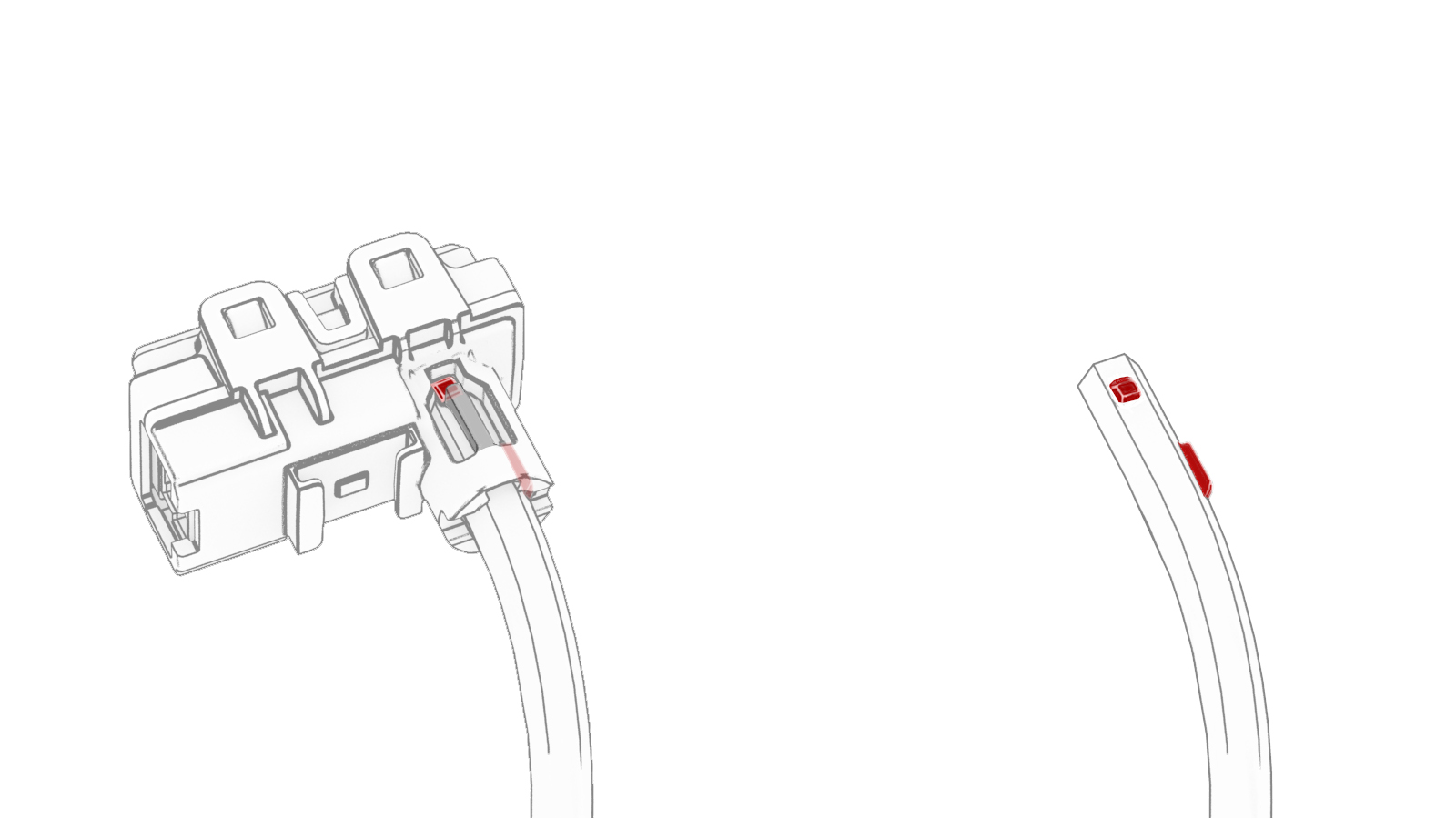 接合将左后车门氛围灯模块固定到 LED 灯带上的锁片(2 个)和定位销。