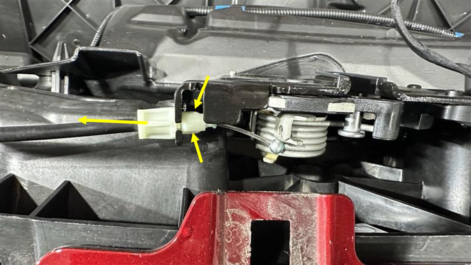 注1x cable, Release plastic tabs securing cable and remove cable end from latch arm
