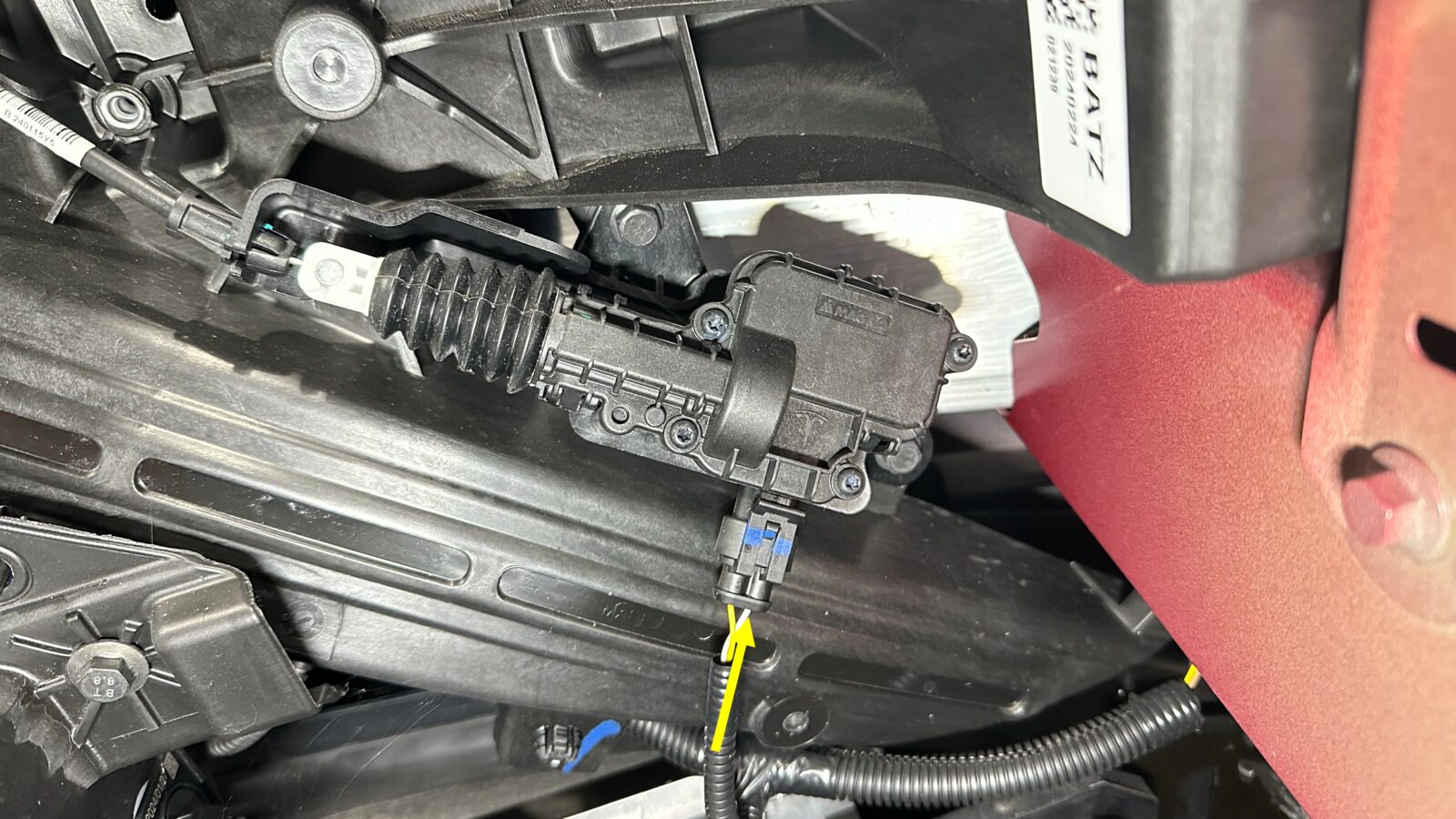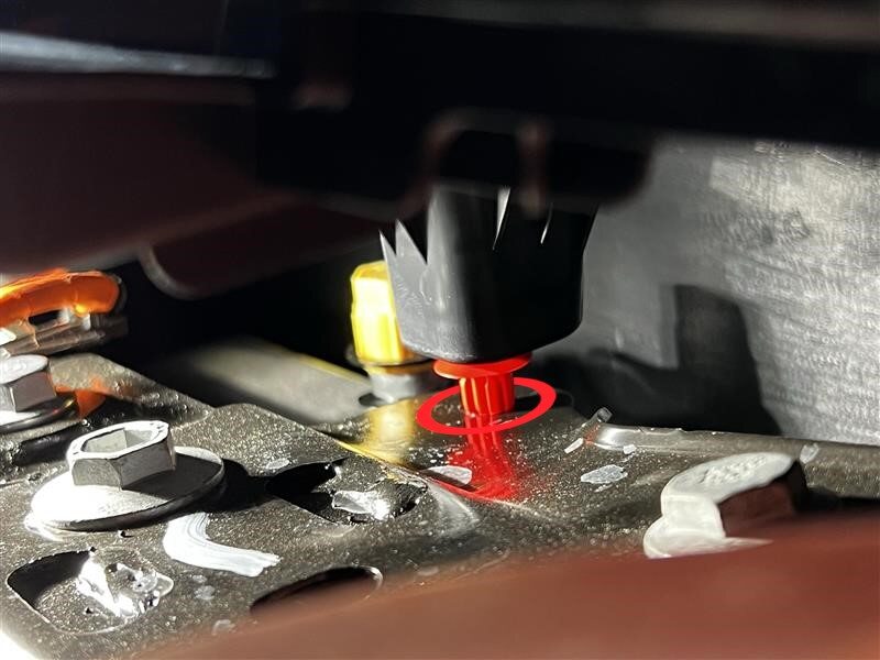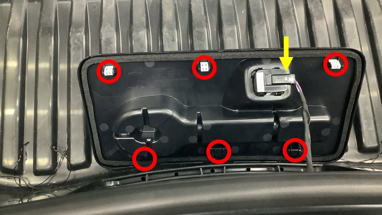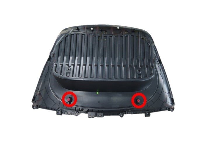 注3x clips, 1x connector, Frunk safety switch, 3x guide tabs, Align 3x tabs then push forward to secure clips