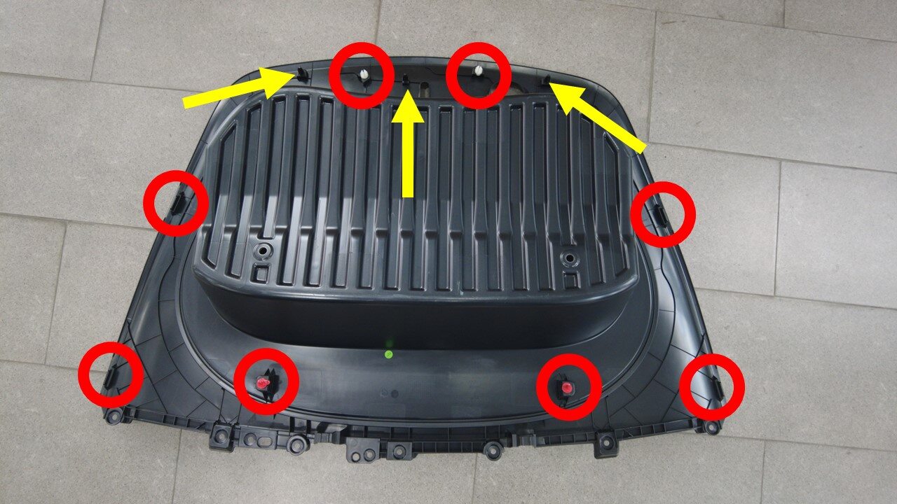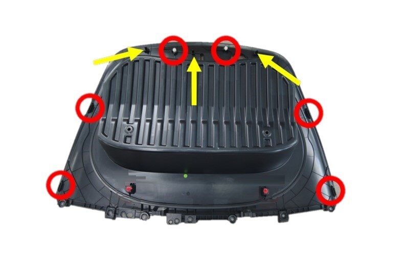 注14x clips, Hold rear wall of frunk to keep from flexing while engaging front clips