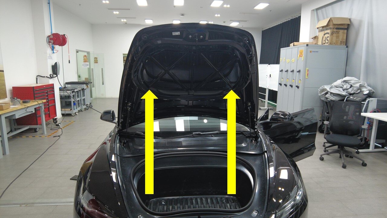 Remove bolts securing frunk assembly from body