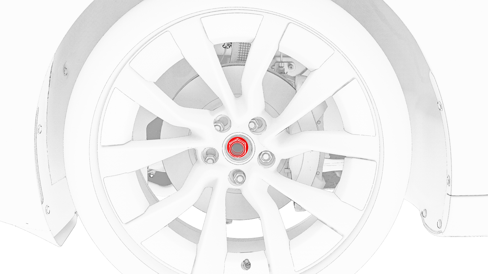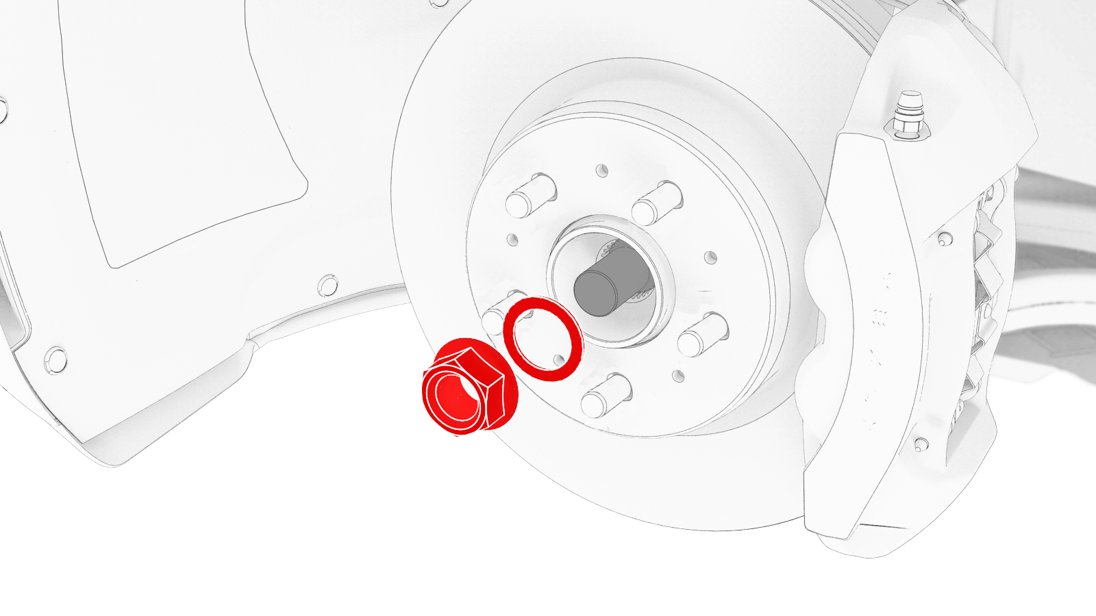 - 拆卸螺母(5 个)和垫圈(5 个),然后从左前轮毂上拆下液压轮毂拉拔器。