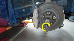 警告如果半轴相对于轮毂的移动停止,则将工具把手逆时针转动两圈。