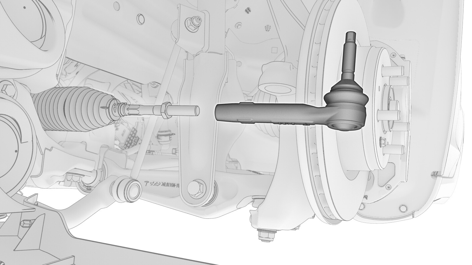 将左侧外横向拉杆总成放置到左前转向节上。