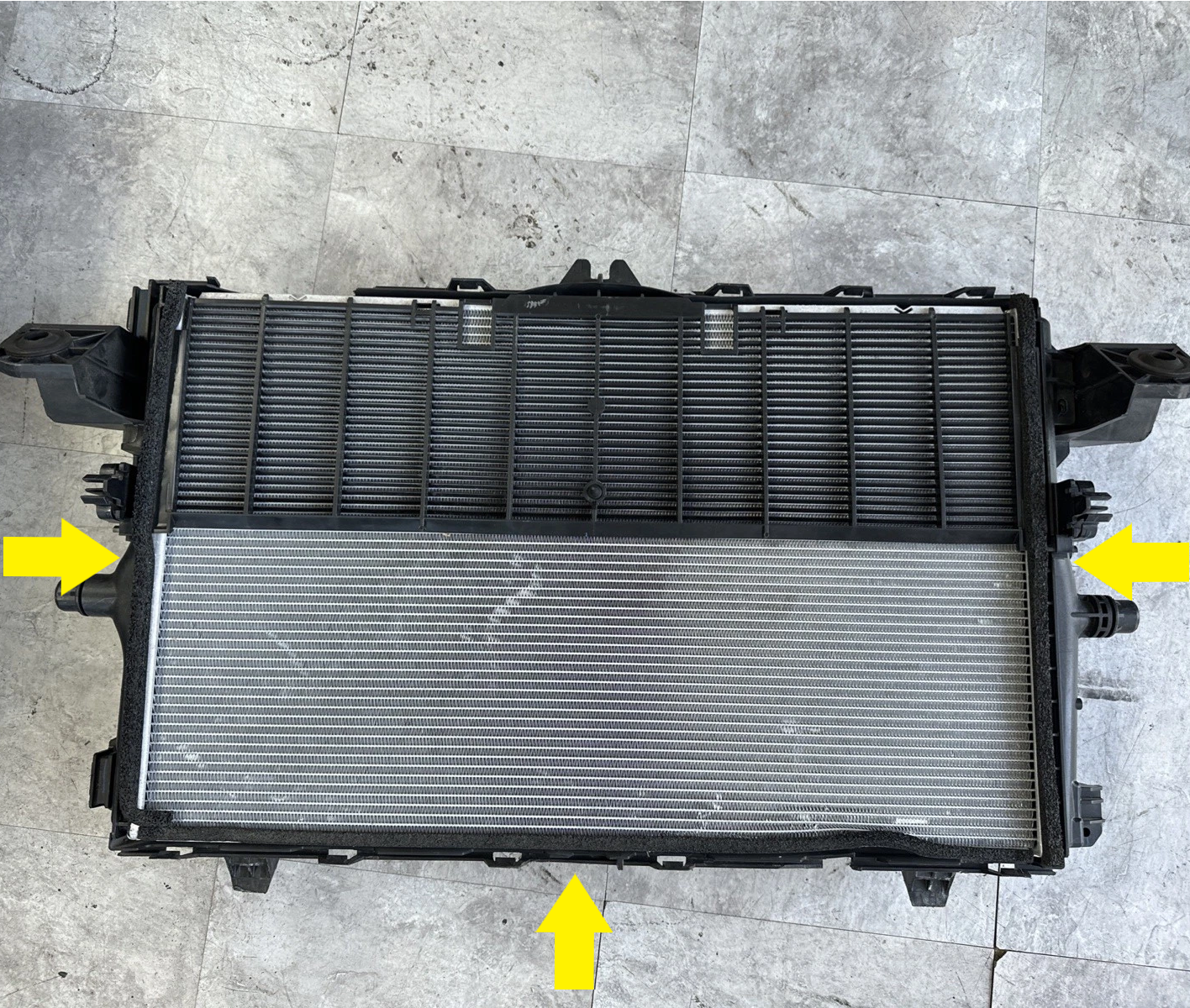 松开将挡石板固定到散热器的卡子,然后向外滑动挡石板,将其从散热器上拆下。