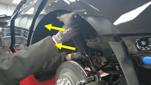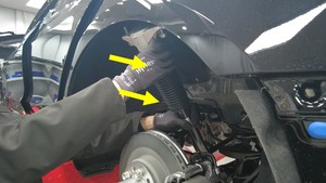 向 LH 后悬架弹簧上安装一个弹簧压缩器:
