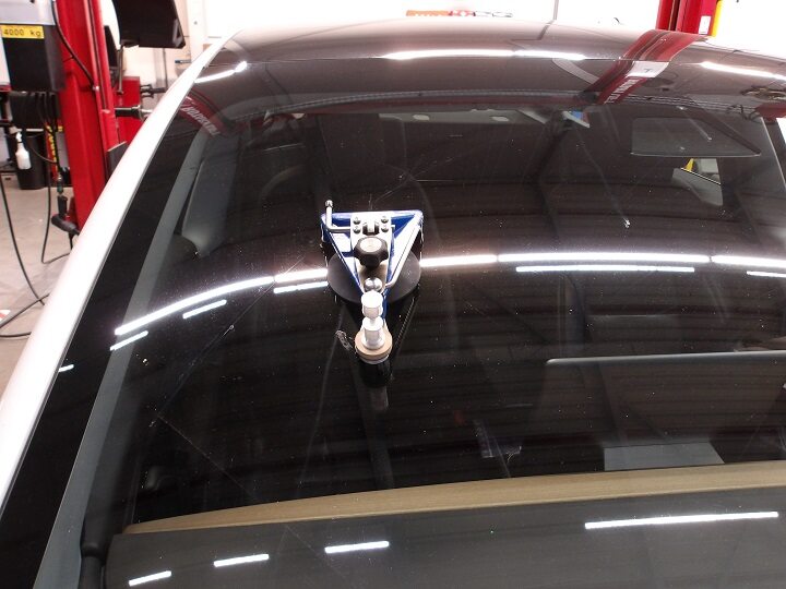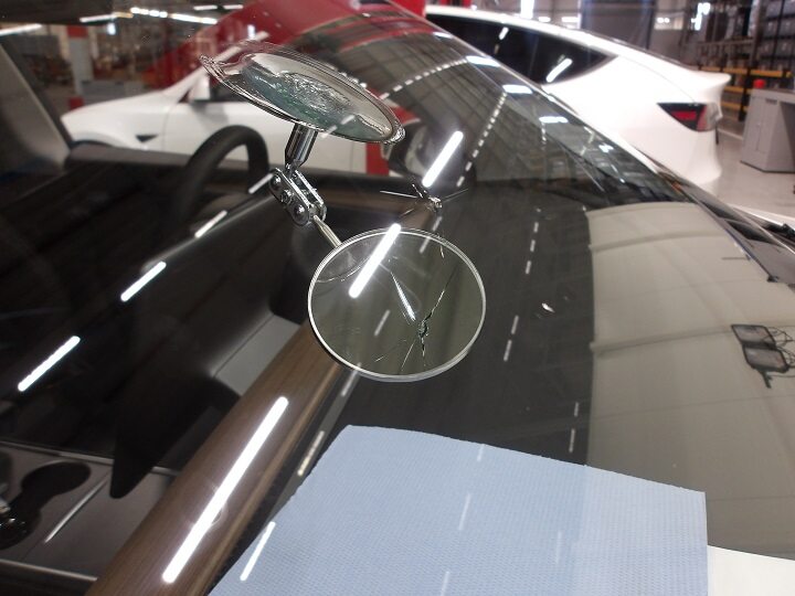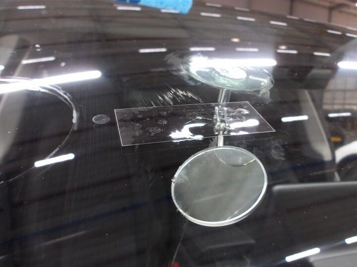 Install the mirror on the inside of the windshield in front of the repair area.