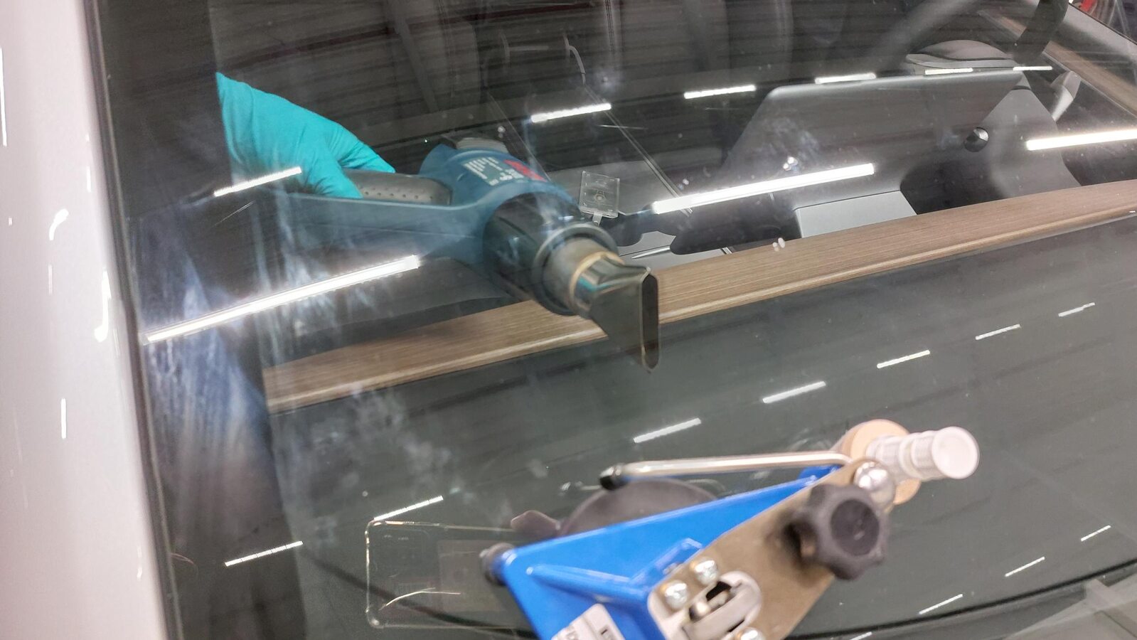 - Switch off the UV lamp and remove it from the windshield.