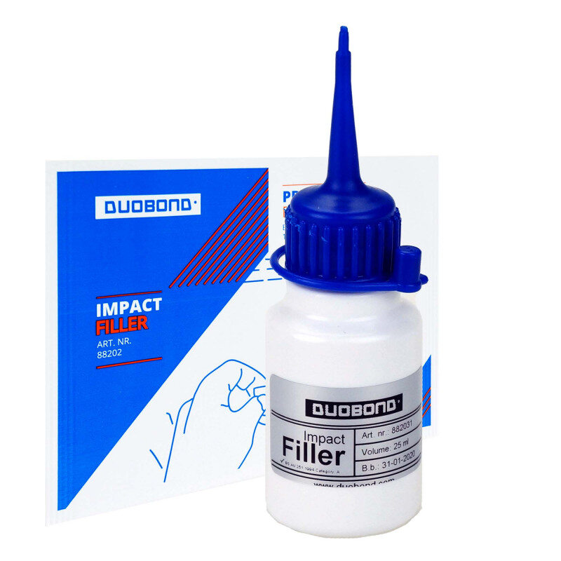 Apply a drop of Impact-Filler above the point of impact and let it run into the point of impact so that no air bubbles remain in the point of impact. Put the curing film over the impact area.