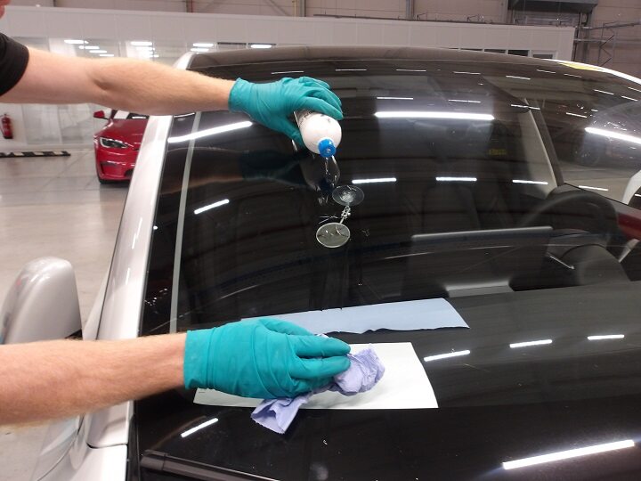 - Use IPA wipes to thoroughly clean the windshield.