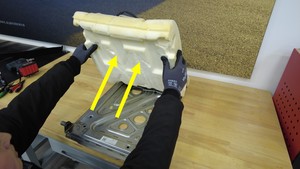 从第二排右侧座椅靠背框架上拆下座椅靠背泡沫。