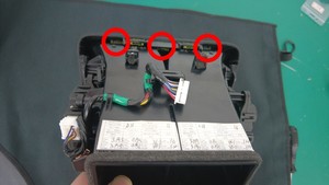 松开将中控台后通风口总成固定到中控台的卡子(3 个),然后将后通风口总成从中控台上拆下。