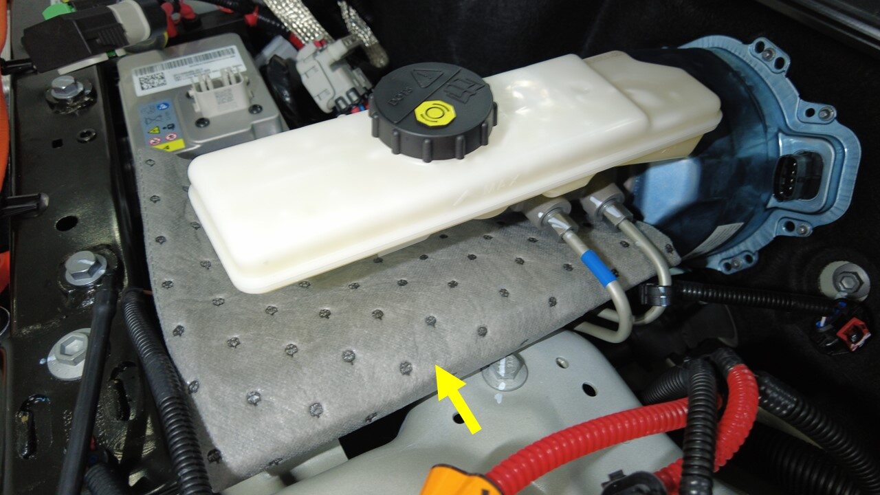 - 安装制动液储液罐罐盖,然后取走放置在制动助力器和储液罐区域下方的吸收性材料。