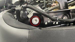 将驾驶位座椅高度电机安装到座椅框架上,然后安装将电机固定到框架的后部螺栓。