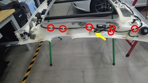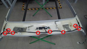 使用胶枪将顶篷线束固定到顶篷上。等待胶水完全风干。
