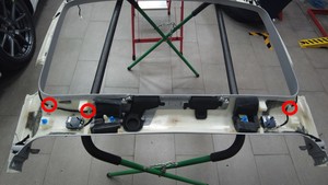 分离将顶篷线束固定到顶篷的胶水粘合点(2 个)。