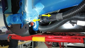 - Use a bungee strap to pull back the RH front wheel liner and secure it to the subframe.