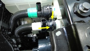 - Install the powertrain supply hose to the vehicle and place a coolant plug on the lower end of the hose to avoid coolant loss.
