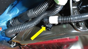 拆卸冷却液塞,将右前歧管软管与左前歧管软管相连,然后紧固弹簧夹。