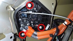 拆卸将充电接口总成固定到车辆的螺栓(3 个),然后从车上拆下总成。