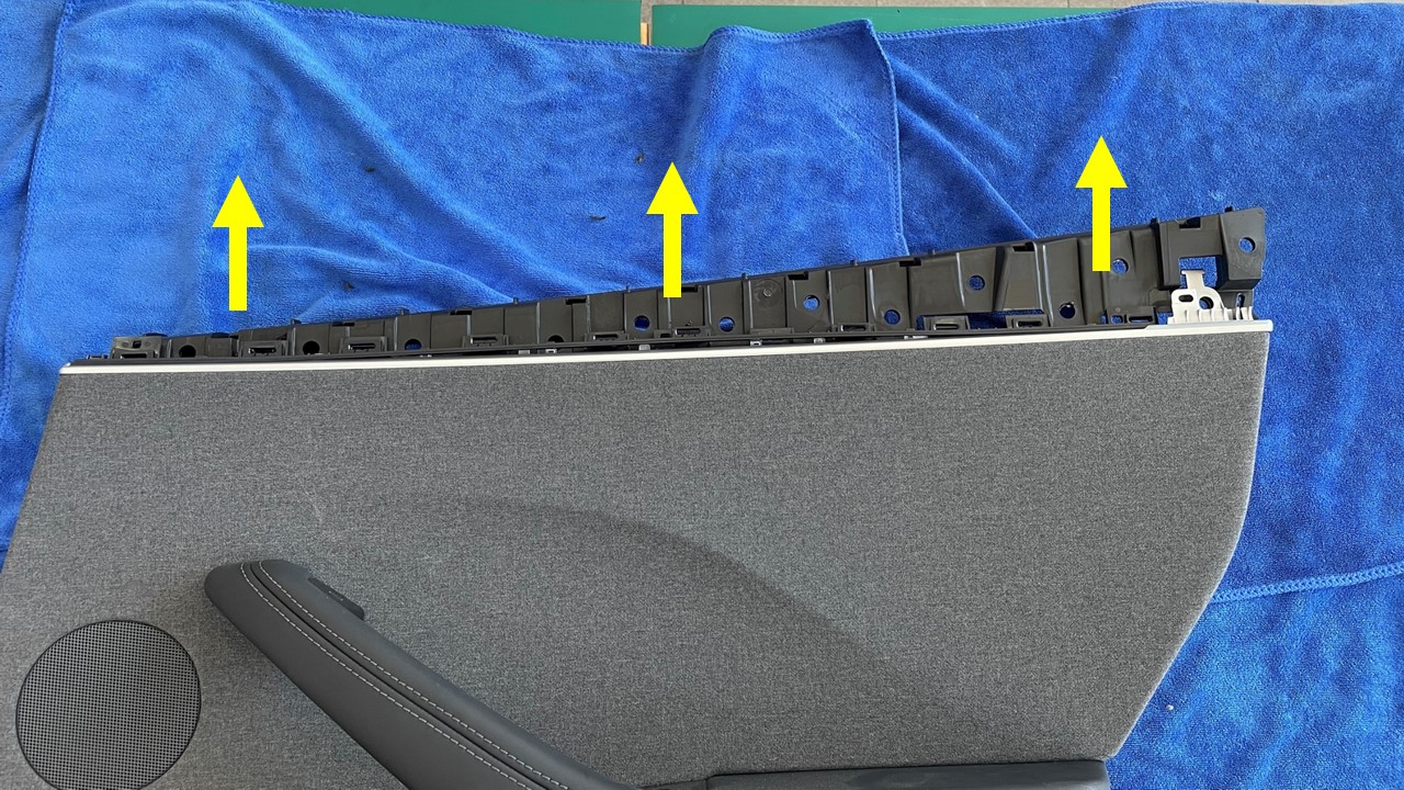注确保上饰板和氛围灯互不妨碍,且车门饰板和氛围灯互不妨碍。必要时进行调节。