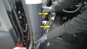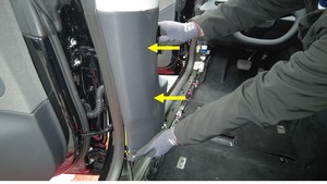- 拆卸左侧 A 柱下饰板。请参阅A 柱下部总成,左 ((拆卸和更换))。
