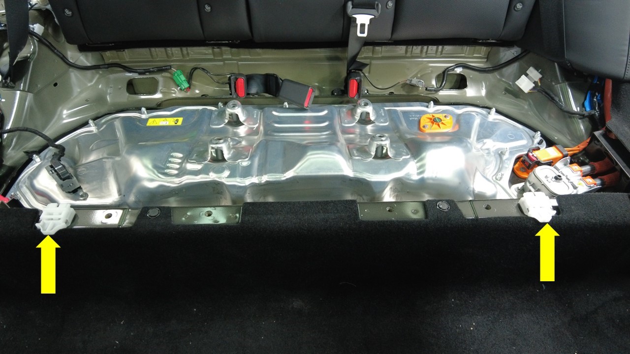 断开座垫电气连接器(2 个),然后将座垫从车上拆下。