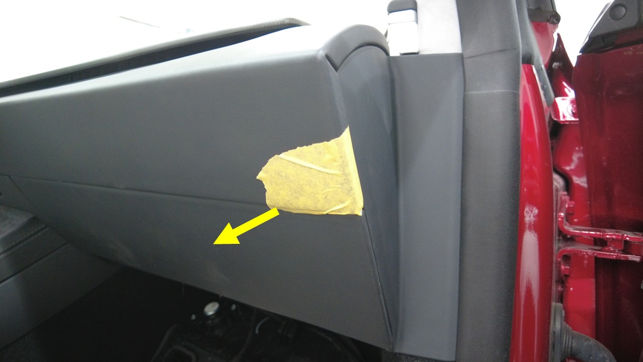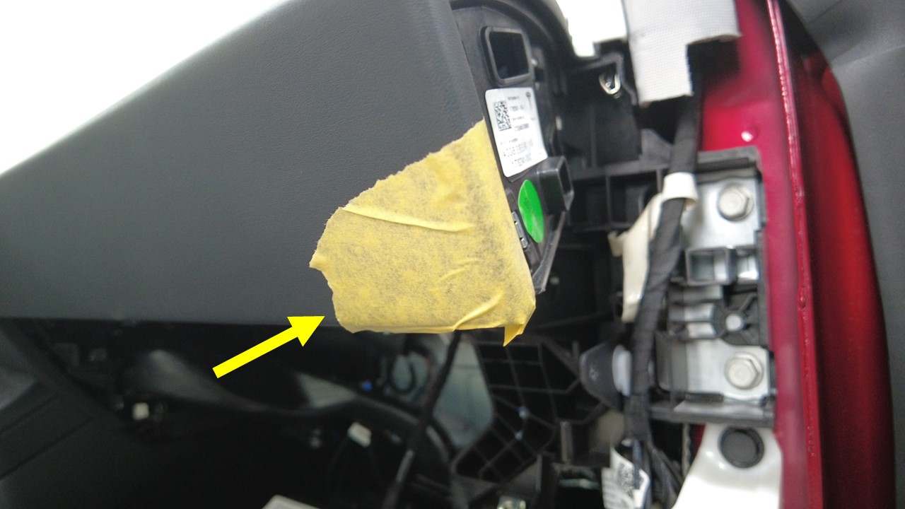 使用胶带缠绕仪表板上饰板下部,以防损坏或刮伤。