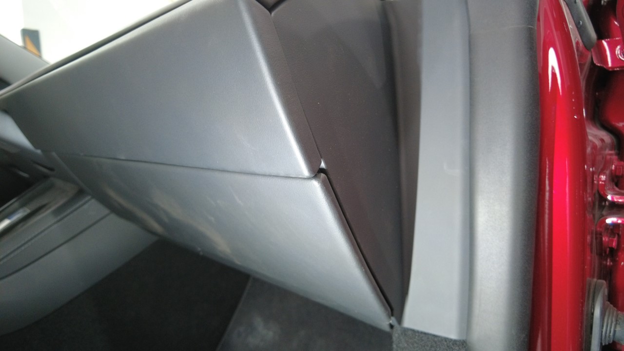 揭下缠绕在仪表板上饰板上的胶带,确认饰板未受损。