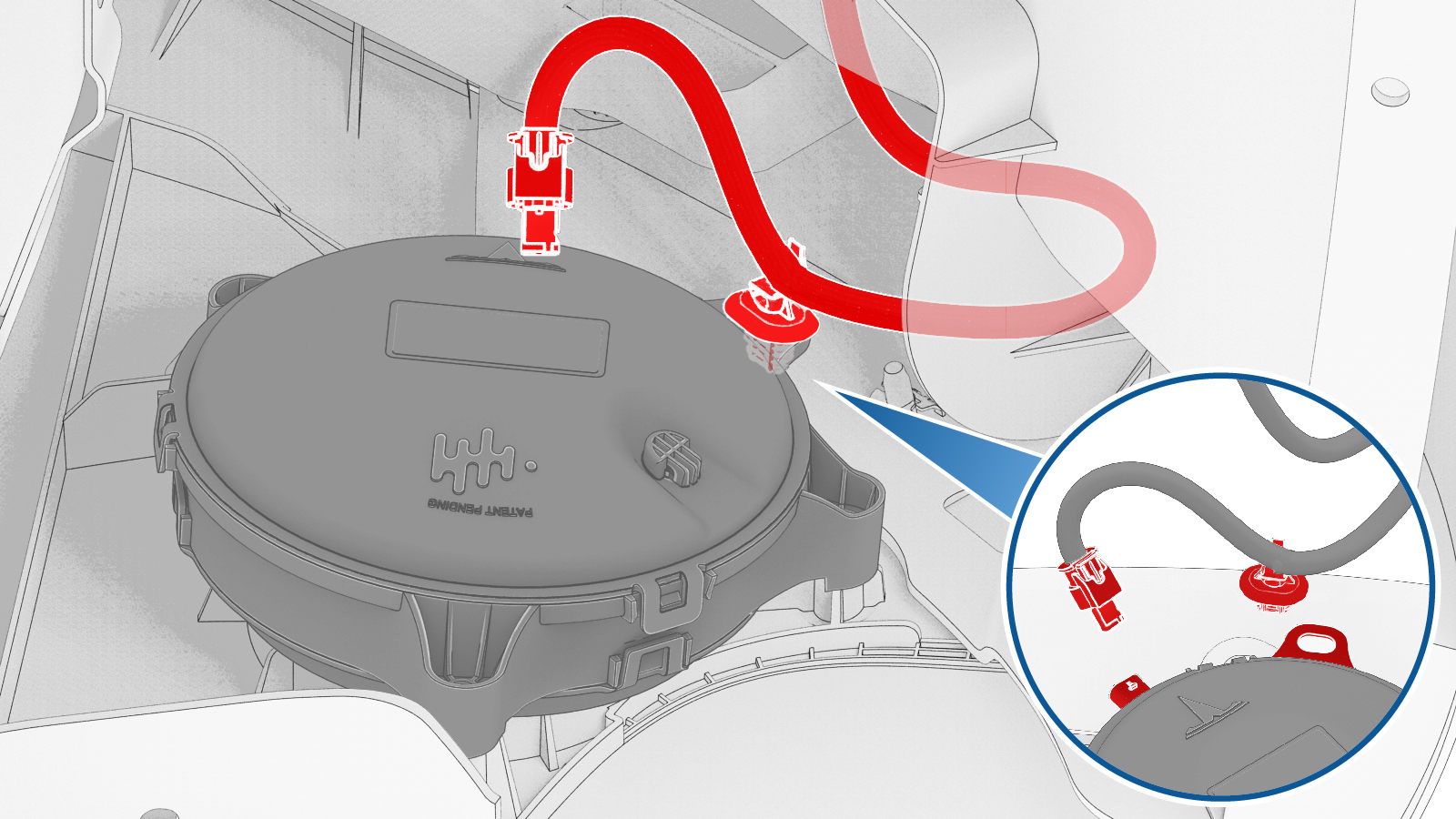 连接行人警示连接器,然后安装将行人警示线束固定到扬声器的夹子。