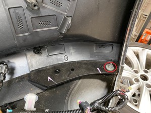 拆下将裙板左右侧固定到轮拱内衬的推拉式卡子(6 个)。