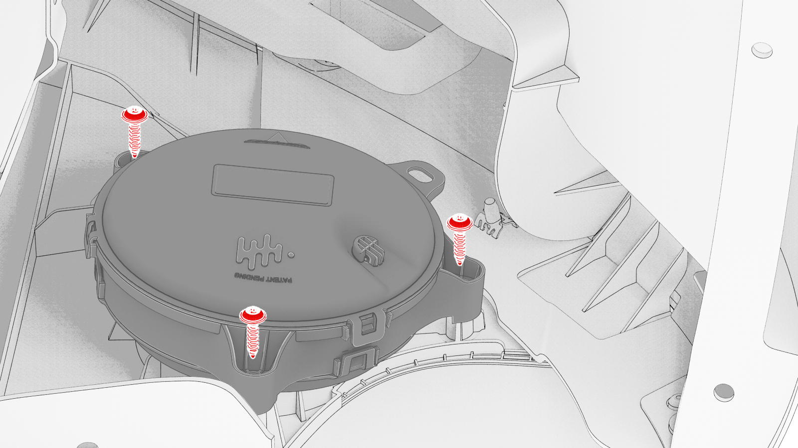 将行人警示扬声器安装到裙板上,然后安装将行人警示扬声器固定到裙板的螺钉(3 个)。
